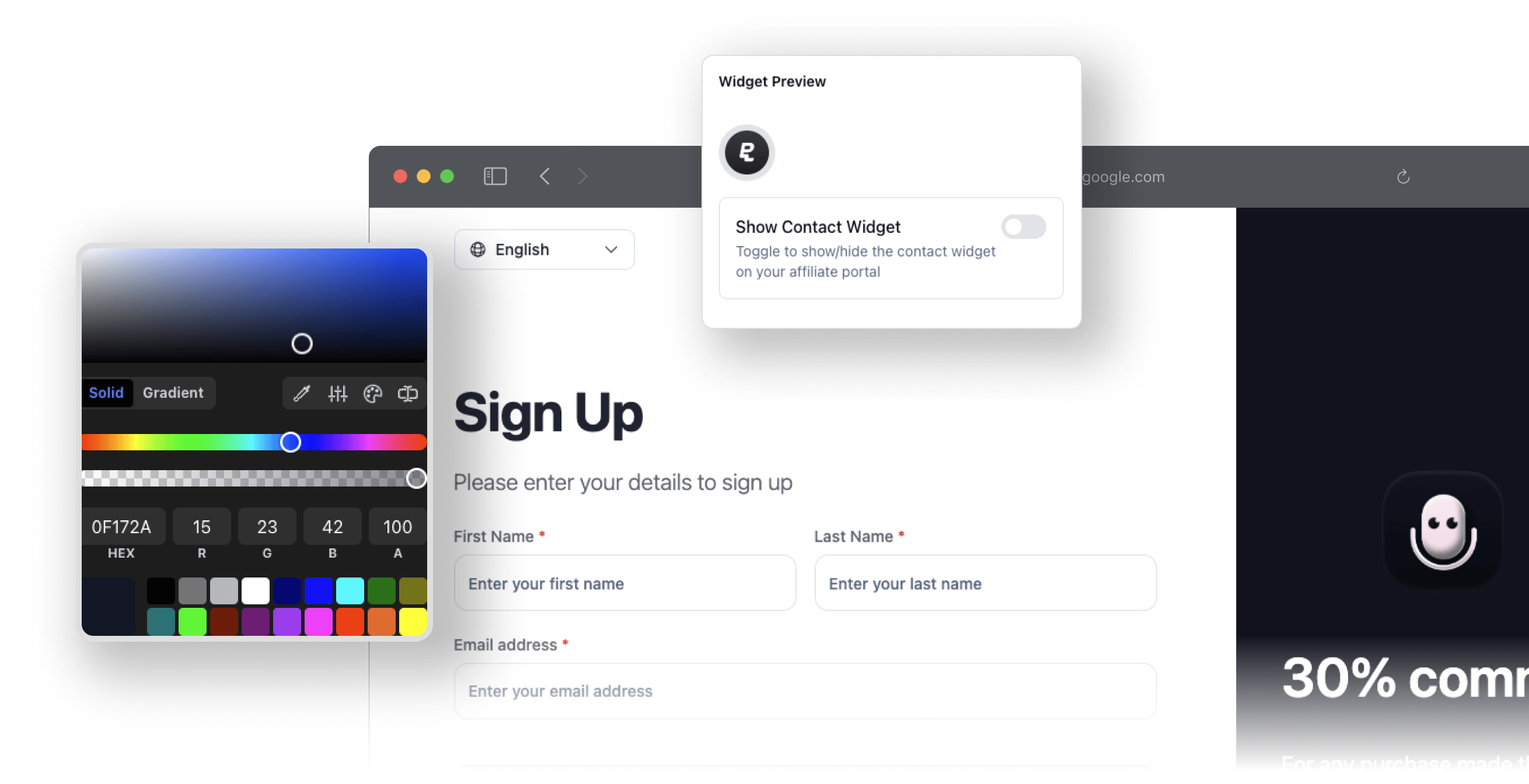 Add a referral widget to your website to automatically give your users a link to share your product and earn commissions.